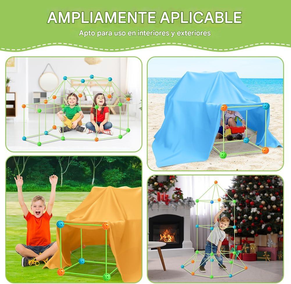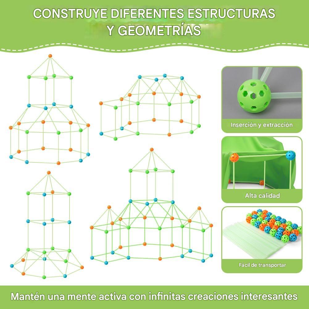 Con este KIT de construcción tu hijo podrá desarrollar su creatividad, mientras mejora sus habilidades. Darle la oportunidad de aprender mientras juega es uno de los mejores regalos en su vida, ayúdalo a estimular todas las áreas de su cerebro mientras se divierte construyendo castillos, túneles, carpas, casas, fuertes, etc.